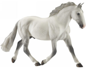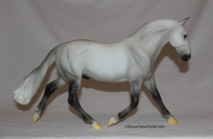 Glossy light dapple grey; wide blaze; striped hooves; BreyerFest Prize SR; 1/30