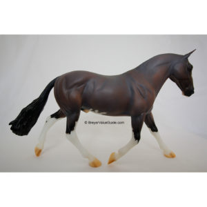 Matte dark chestnut pinto; apron face; 1 hind sock; BreyerFest prize SR; 1/10