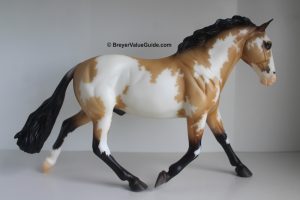 Matte buckskin pinto, stenciled bald face, blue eyes, 1 hind stocking, long mane, BreyerFest SR, 1/950 matte