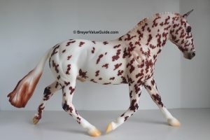 Matte red chestnut leopard appaloosa, stenciled spots, roaning, resist spots on muzzle and sheath, braided mane, BreyerFest SR, 1/1250 matte