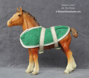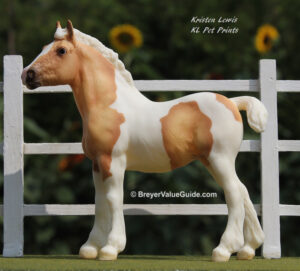 Glossy chestnut pinto; mostly white; medicine hat markings; blue ribbon sticker; blue blanket; carrying case box; Vintage Club SR; 1/500