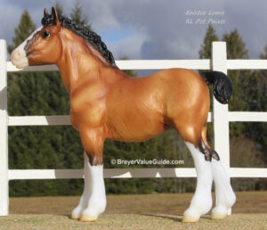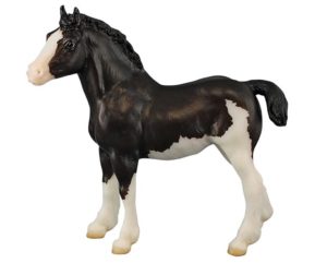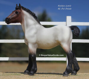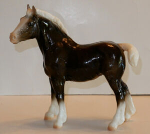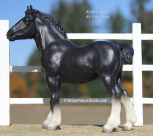 Glossy charcoal; bald face, white mane and tail, 4 stockings, eye whites, Tour Raffle SR; 1/10