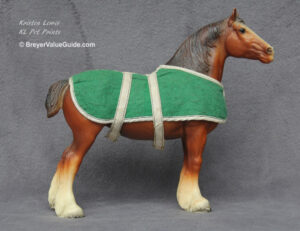 Glossy chestnut pinto; mostly white; medicine hat markings; blue ribbon sticker; blue blanket; carrying case box; Vintage Club SR; 1/500