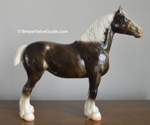 Matte shaded brown with pearly white mane and tail; 4 socks; solid face; True Blue Event SR; 1/48