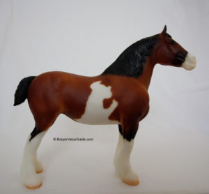 Glossy dappled bay; blaze with chin spot; splash spots on belly; 3 stockings; "2009 Limited Edition - BreyerWest" on belly; BreyerWest SR; 1/300
