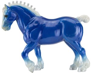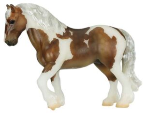 Glossy bay sabino pinto; wide blaze; chin spot; dapples; white legs; first release of the Stablemate Clydesdale Stallion with long mane and tail; Stablemates Club SR