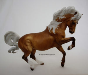 Glossy alabaster; light grey shaded face; grey and natural hooves; brand on left hip; BreyerFest Prize SR; 1/48