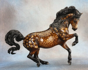 Semigloss silver dapple, small star, flaxen mane and tail, “Sparrow 2023” belly stamp, Birds of a Feather Series SR, 1/500