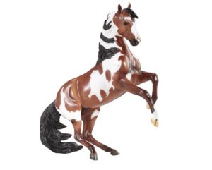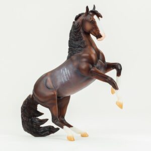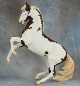 Glossy bay pinto; wide blaze; 1 front sock with striped hoof; BreyerFest Prize SR; 1/50