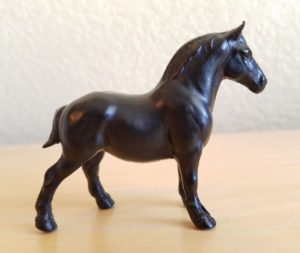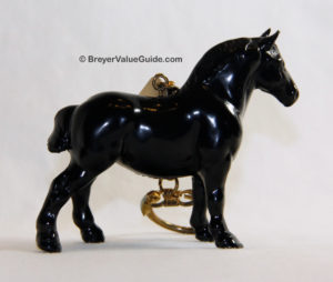 Unpainted black plastic; with gold keychain and Breyer tag; BreyerFest SR; 1/500