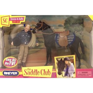 Matte red chestnut; star; snip; 2 hind socks - with doll and English tack