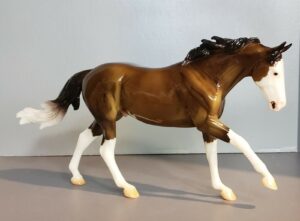 Glossy shaded chestnut pinto, crooked stripe, 2 hind socks, BreyerFest Prize SR, 1/60