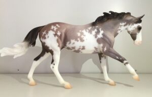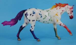 Matte leopard appaloosa, rainbow spots, rainbow mane and tail, and legs, with blue interference, BreyerFest SR, 1/700 matte
