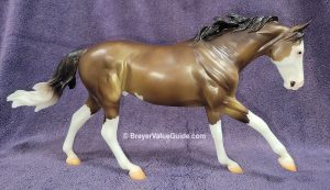 Matte shaded chestnut pinto, crooked stripe, 2 hind socks, BreyerFest Celebration Model SR