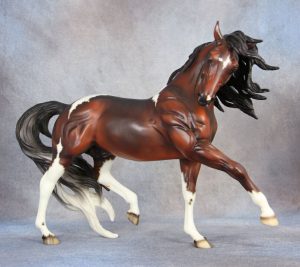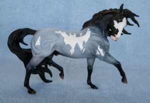 Matte blue roan pinto, stenciled bald face, blue eyes, black mane and tail, black legs, Greek Gods Series SR; 1/230