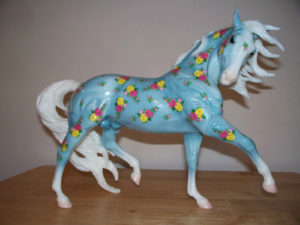 Glossy decorator blue with floral decals; BreyerFest SR; 1/1100