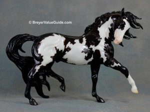 Matte black overo pinto; stenciled bald face, pink muzzle, 1 front sock, BreyerFest SR, 1/1223