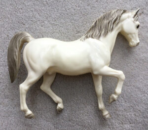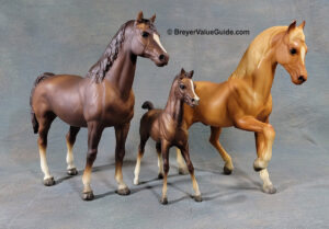 Glossy alabaster; grey mane, tail and hooves; pinked muzzle; 1988 on belly; 1/1000; SR - with Family Arabian Foal and Family Arabian Mare