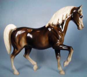 Glossy gold florentine; white mane and tail; bald face; 4 socks; blue ribbon sticker, Vintage Club SR; 1/125
