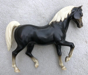 Glossy copenhagen blue; white mane and tail; bald face; 4 socks; blue ribbon sticker, Vintage Club SR; 1/125