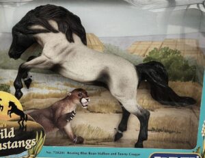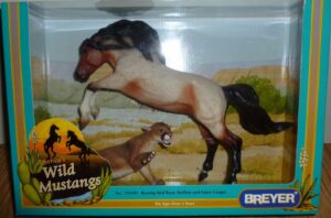Matte dark buckskin; black points; some leg barring; JCPenney SR - with Sombra and "The Challenger" print