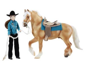 Matte palomino; large snip; 3 socks; with Western rider and tack