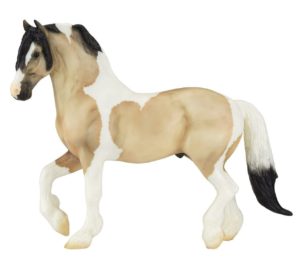 Matte buttermilk buckskin pinto; wide blaze; white legs; bi-color mane and tail; BreyerFest Prize SR