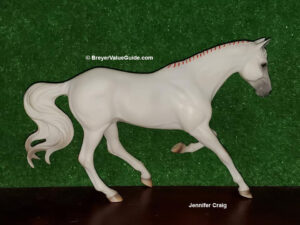 Matte alabaster; grey shaded muzzle; shell hooves; red braids
