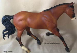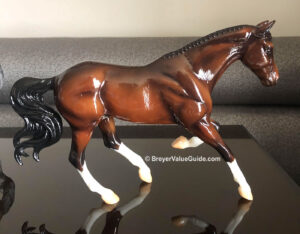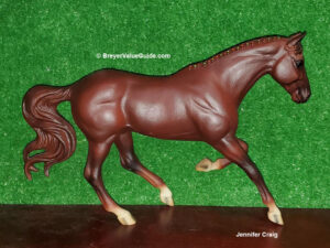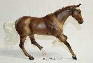 Glossy chestnut, blaze, 1 hind sock ; BreyerFest Live Show Prize Model Youth Reserve Grand Champion, 1/4