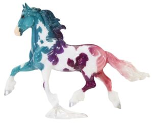 Glossy jewel-tone rainbow pinto; wide blaze; 4 socks; silver hooves; Limited Edition; 1/4000