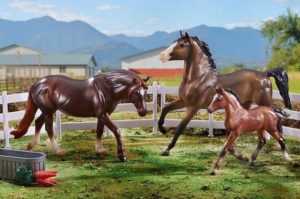 Matte black; blaze; 2 front socks - with Standing Thoroughbred; Harper; Haflinger Foal
