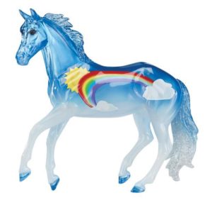 Matte light blue, blue and pink mane and tail, gold hooves and horn, WalMart release