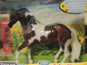 Glossy bay pinto; broken stripe; white tail; 4 stockings; BreyerFest Prize SR