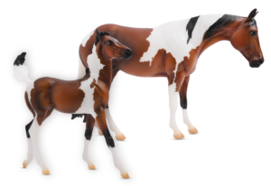 Hawkeye - Foal, matte strawberry roan, sabino pinto, stenciled bald face, 4 stockings