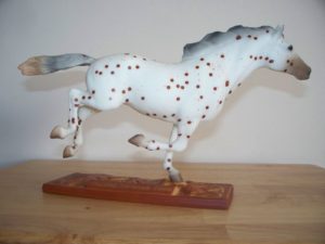 Matte leopard appaloosa; brown spots; light grey shaded mane and tail