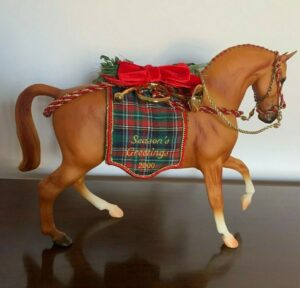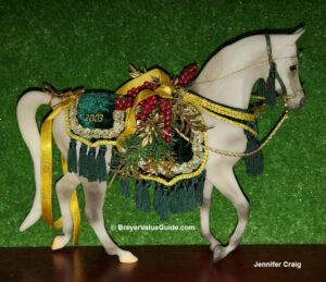 Pearlescent dapple grey with blue overtones; includes holiday tack; Holiday Horse SR - "Happy Holidays 2006" stamped on belly