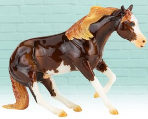 Glossy shaded flaxen liver chestnut splash pinto; stenciled bald face; 4 stockings; blue eyes; Collector Club Gamblers Choice SR