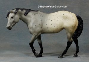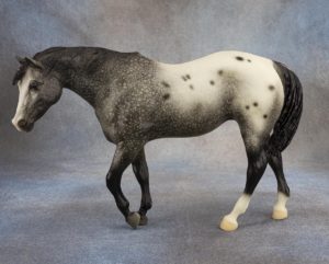 Matte dappled grey appaloosa; bald face; 2 hind socks; Model Horse Jamboree SR; 1/1300