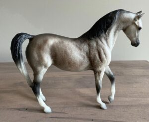 Matte rose grey with light grey and chestnut shading; grey hooves; Enchanted Doll House SR - with Arabian Foal, and tin