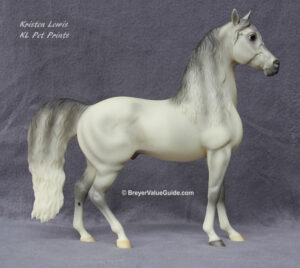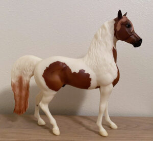 Matte light bay pinto; wide blaze; bi-color mane and tail; 3 stockings; Connoisseur SR; 1/350