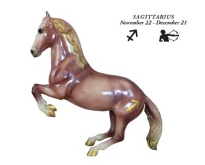 Glossy decorator; rose coloring with blue metallic highlights; gold hooves; Zodiac signs on hips; Zodiac Series