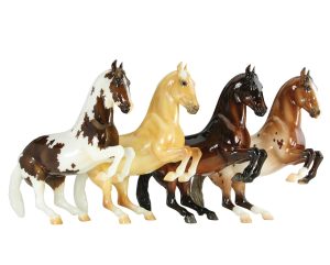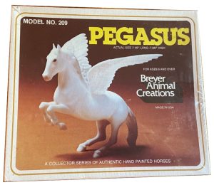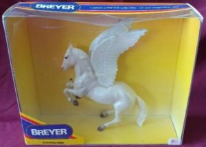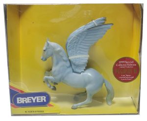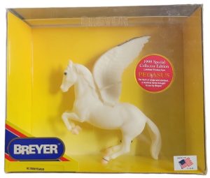 Matte alabaster; gold trim on wings and 1 gold coronet band on hoof; Toys R Us SR