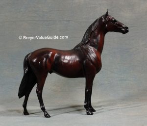 Matte chestnut; darker mane and tail; elongated star; Hobby Center Toys SR; 1/1000 - with Swaps; Terrang