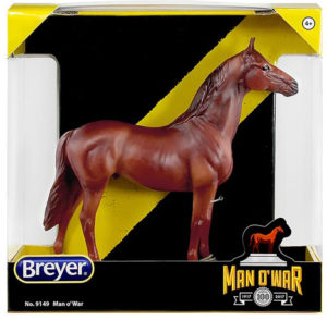 Glossy chestnut, 3 socks, stripe, includes blue ribbon rosette and a 1970's style Classic Racehorse Series box,