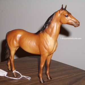 Matte light sandy bay; black mane and tail; includes neck ribbon