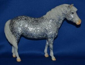 Glossy silver filigree; bald face; white mane and tail; BreyerFest and Web SR; 1/1200 - with bag and magnet