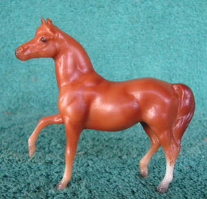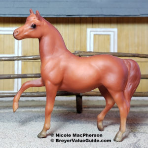 Matte chocolate sorrel; lighter mane and tail; various socks; same as #711094; Sears SR