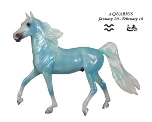 Iridescent turquoise blue with white/ blue mane and tail; Zodiac signs on hips; Zodiac Series SR
