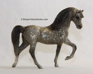 Matte resist/wild dapple grey; darker mane and tail; various socks