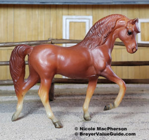 Matte chestnut; darker mane and tail; varying socks; same as #495600